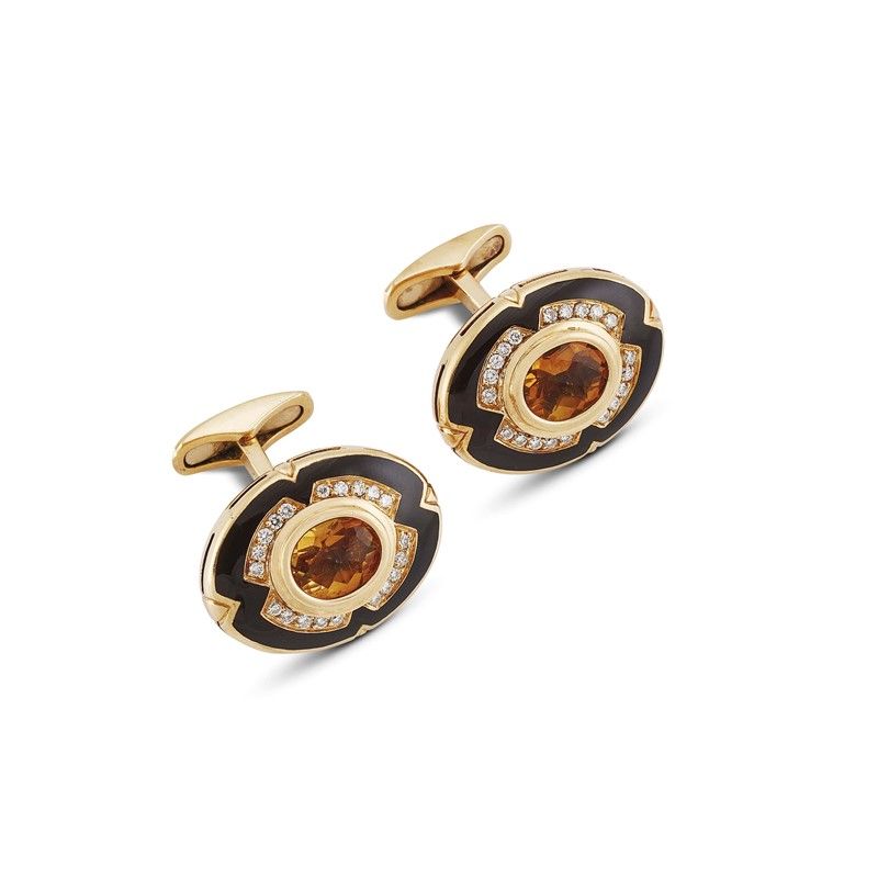 STEFANO RICCI CITRINE QUARTZ AND DIAMOND CUFFLINKS IN 18KT YELLOW GOLD