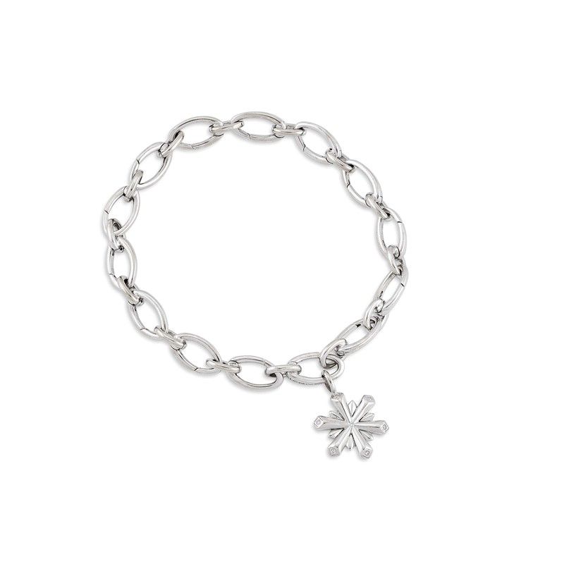 in oro bianco 18kt, realizzato a catena con pendente a forma di stella, firmato "T&Co", punzone 750, lungh. cm 19,5, gr. 19. Corredato di sacchetto e scatola.