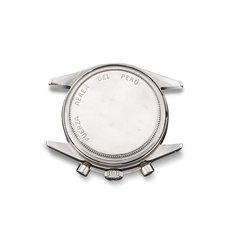 The Rolex Daytona ref. 6239, was supplied to the Peruvian Air Force, unit of the army born in the early 900 and consolidated in the 50s with the union of the Peruvian navy and army. The military unit F.A.P., Fuerza Aerea of Peru, like many other military companies of the time, decided to equip its pilots and high-ranking officers with the most precise chronograph watches of the time. The chronographs delivered to the F.A.P. were made on standard production models but had distinctive features starting from the case back with the peculiar engraving Fuerza Aerea del Peru.
