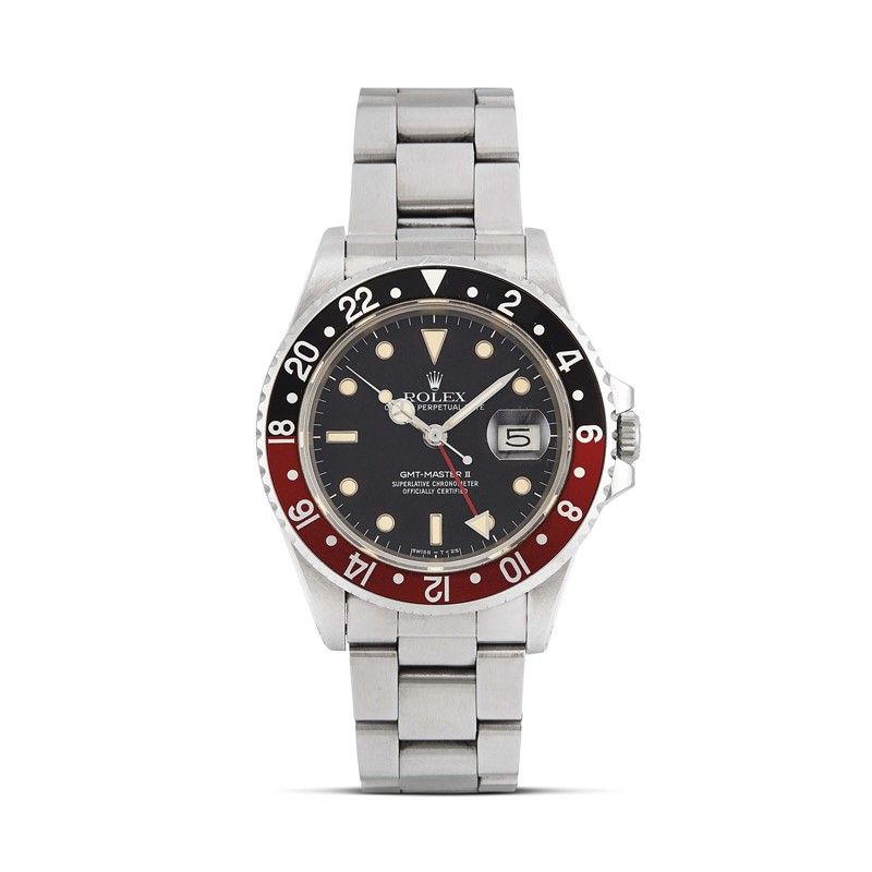 ROLEX GMT MASTER II "COKE" REF. 16760 N. 90693XX STAINLESS STEEL WRISTWATCH, 1985