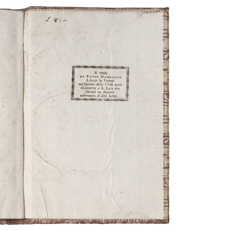 LOVELY COPY ON REMONDINIAN PAPER and with label from ancient Veronese bookseller Pietro Massalongo. Condition report upon request.