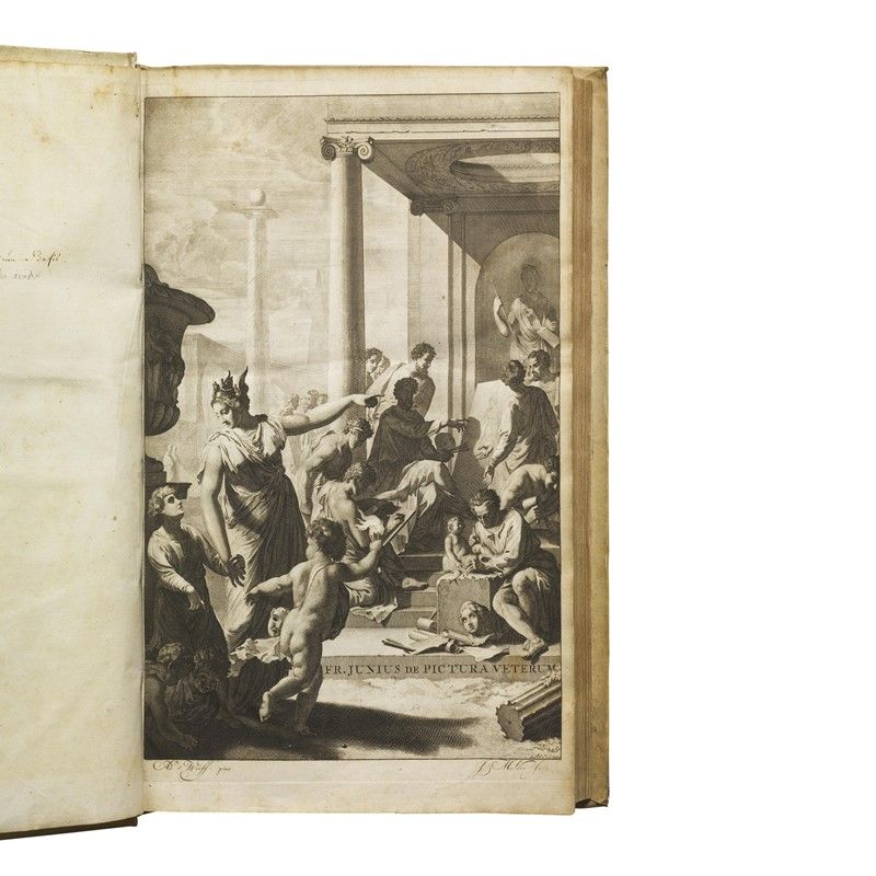 (Arte) JUNIUS, François. De pictura veterum libri tres […] accedit Catalogus, adhuc ineditus, architectorum, mechanicorum … Roterodami, typis Regneri Leers, 1694.