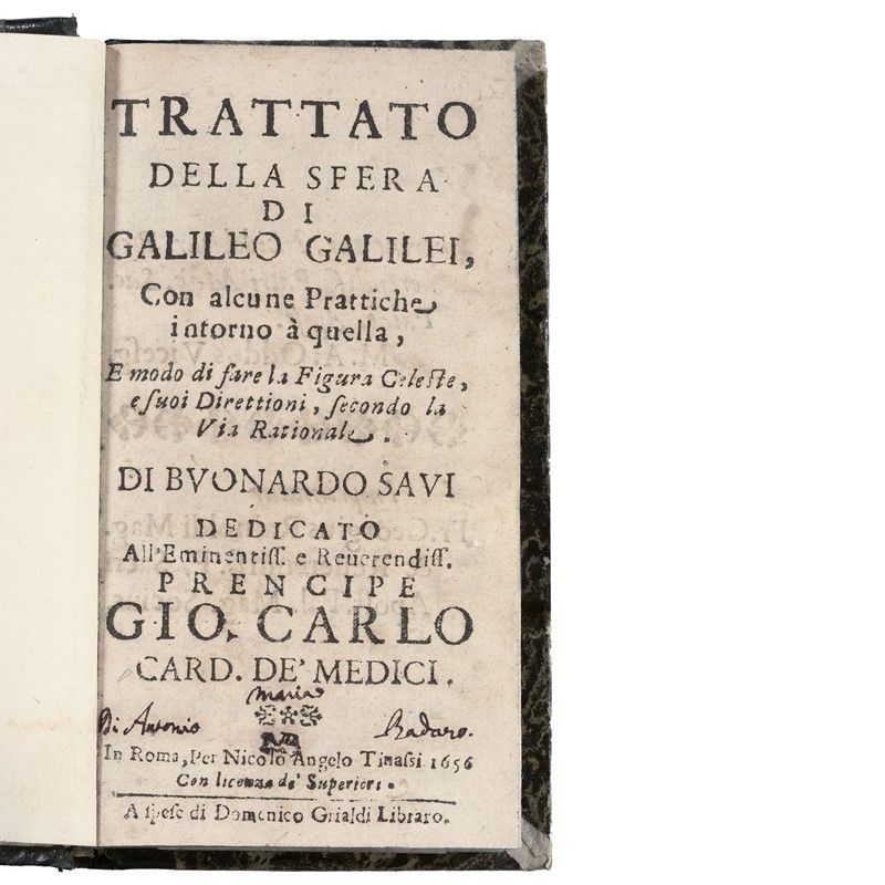 (Astronomia - Prime edizioni) GALILEI, Galileo. Trattato della sfera di Galileo Galilei, con alcune prattiche intorno a quella, e modo di fare la figura celeste, e suoi direttioni, secondo la via rationale. In Roma, per Nicolò Angelo Tinassi a spese di Domenico Grialdi libraro, 1656.