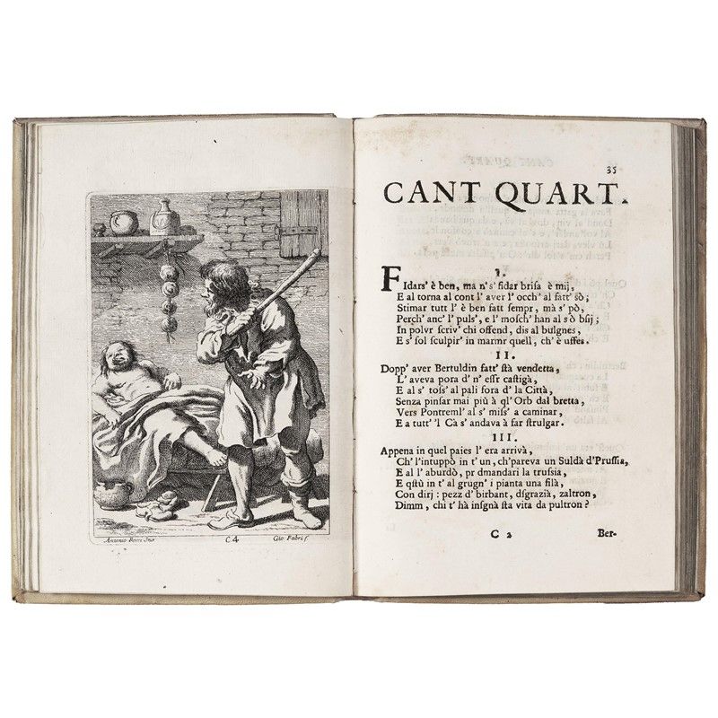 Renowned goliardic poem in Bolognese dialect, illustrated with eight plates. Translation of description and condition report upon request.