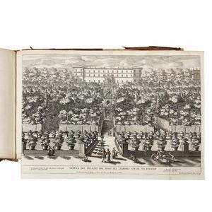 [ROMA 700 - STAMPE]. Villa Pamphili, album in folio (ca. 420 x 690 mm) contenente 3 vedute grandi, una pianta [..]
