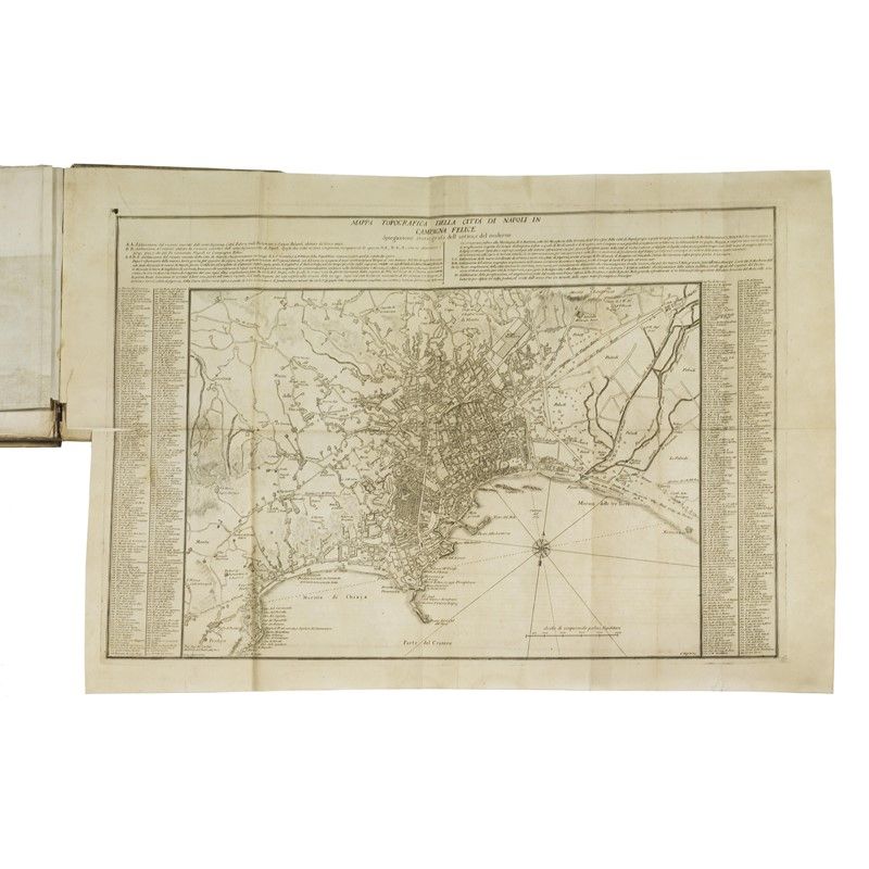 In 4to (254 x 200 mm). xxxv [5] 372 pp. e [2] tavole calcografiche ripiegate. Cartonato moderno. -- Assente l’occhietto, frontespizio pallidamente fiorito nella parte inferiore, con piccola mancanza al margine bianco inferiore, e con due timbretti privati; fioriture occasionali, un paio di strappetti alla mappa topografica di Napoli, legatura priva del dorso.
