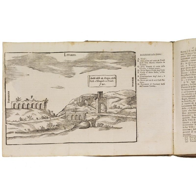 Important work dedicated to the history of Roman hydraulics and also concerning the archaeology and history of ancient and modern Rome. A few defects. Only 2 (of 4) plates in volume one. Not collated. Detailed description, condition report and additional images upon request.