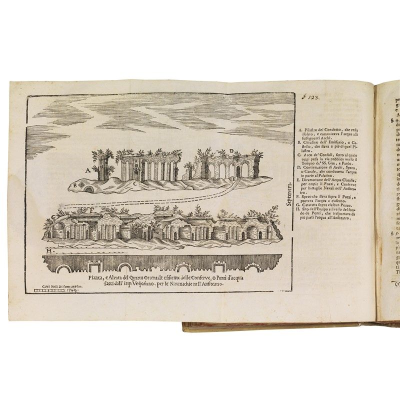 Importante opera dedicata alla storia dell’idraulica romana e concernente anche l’archeologia e la storia di Roma antica e moderna.