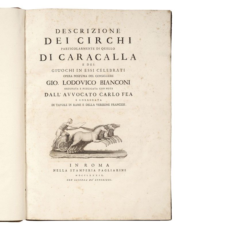 (Roma - Illustrati 700) BIANCONI, Giovanni Lodovico. Descrizione dei circhi particolarmente di quello di Caracalla e dei giuochi in essi celebrati. In Roma, Stamperia Pagliarini, 1789.