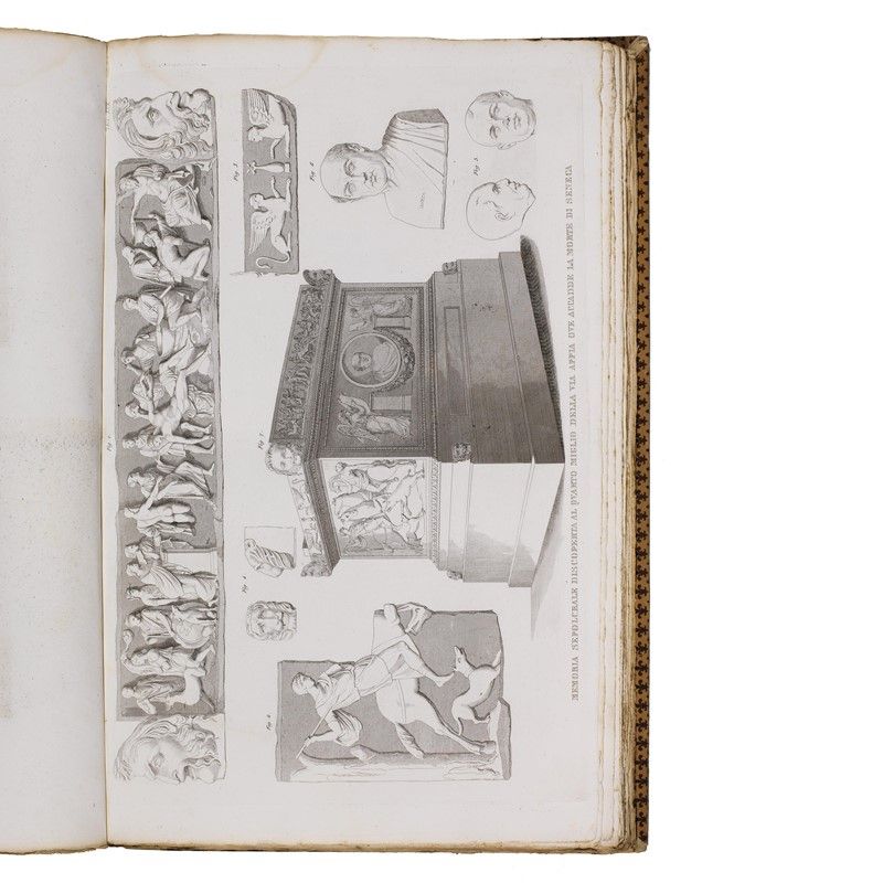 Lot of two illustrated works on monuments of the ancient Rome in four volumes by Luigi Canina. Not collated, lacking plates. Detailed description, condition report and additional images upon request.