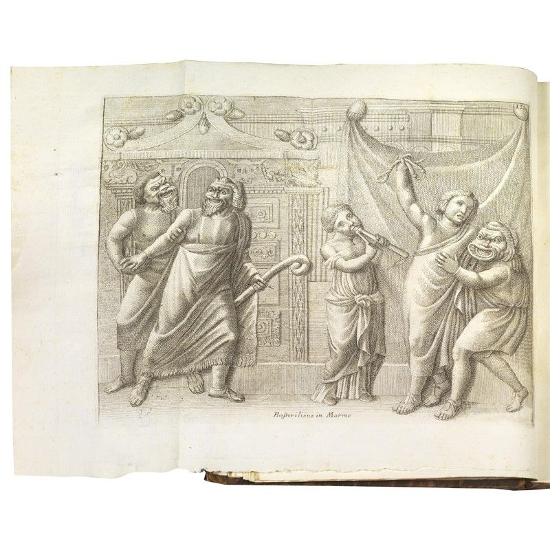 (Teatro - Illustrati 700) FICORONI, Francesco de. Le maschere sceniche e le figure comiche d’antichi romani. In Roma, nella Stamperia di Antonio de’ Rossi, 1736.