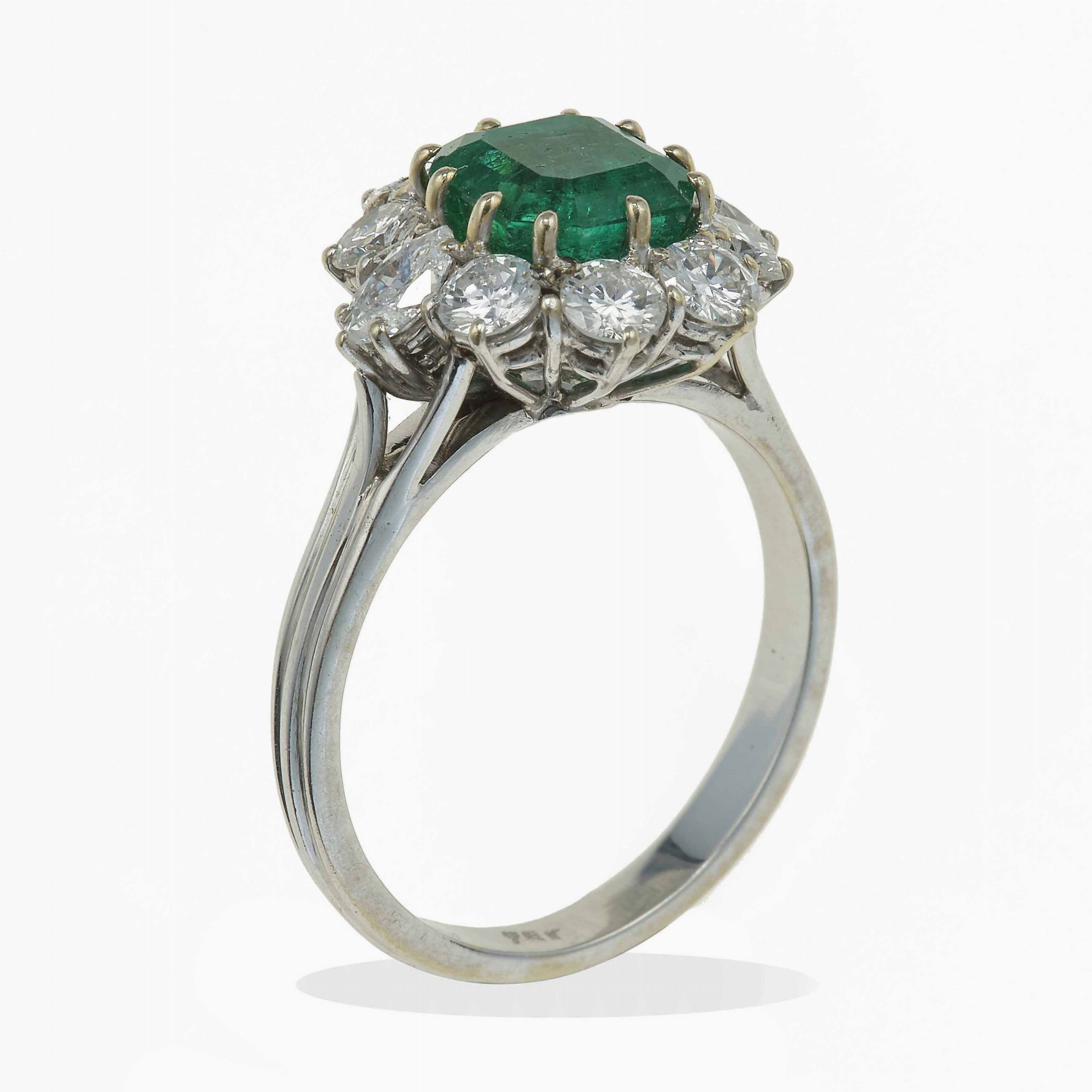 Anello con smeraldo Colombia di ct 2.20 circa e diamanti a contorno