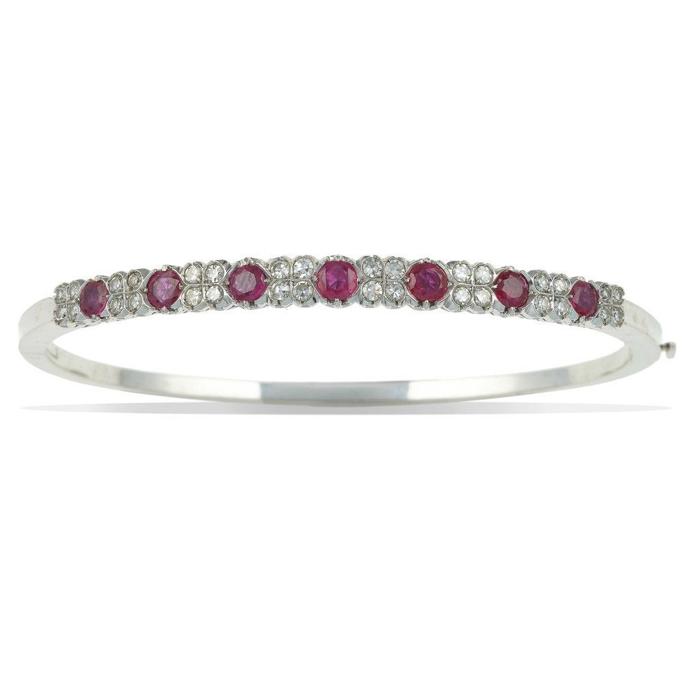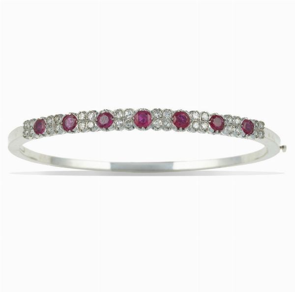 Bracciale rigido con rubini Burma e diamanti taglio huit-huit