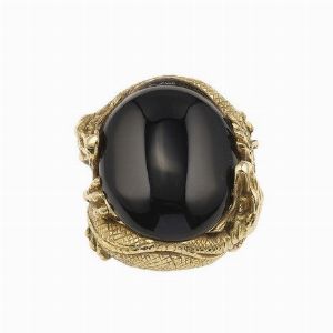 Anello dragoni con gemma sintetica taglio cabochon