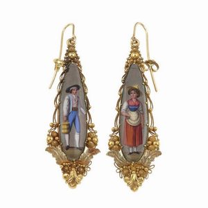 Orecchini in stile con miniature in smalti policromi