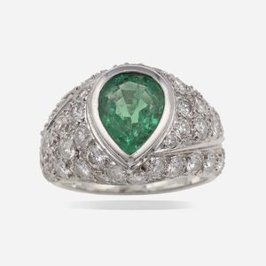 Anello con smeraldo Colombia taglio cabochon e diamanti