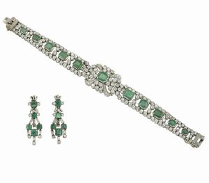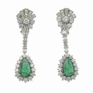 Orecchini pendenti con smeraldi taglio a goccia e diamanti