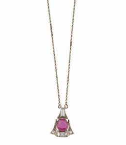 Pendente con rubino Burma di ct 1.27 circa, nessuna indicazione di trattamento termico, [..]