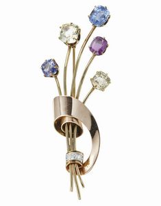 Bracciale fiori con diamanti, rubini e zaffiri sintetici