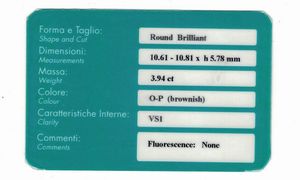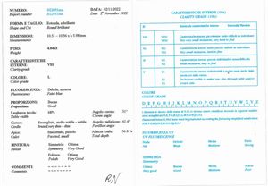 Diamante taglio brillante di ct 1.54, colore L, caratteristiche interne VS2, fluorescenza [..]