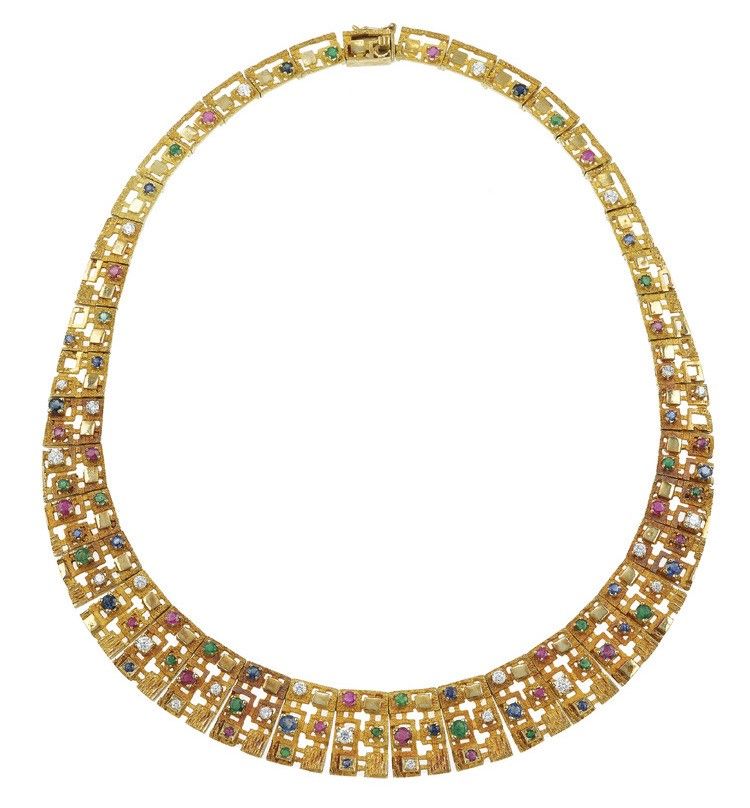 Girocollo con diamanti, smeraldi, rubini e zaffiri