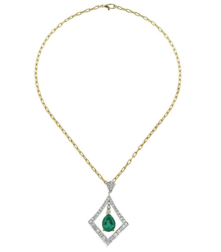 Girocollo con pendente con smeraldo Colombia di ct 6.49 circa e diamanti