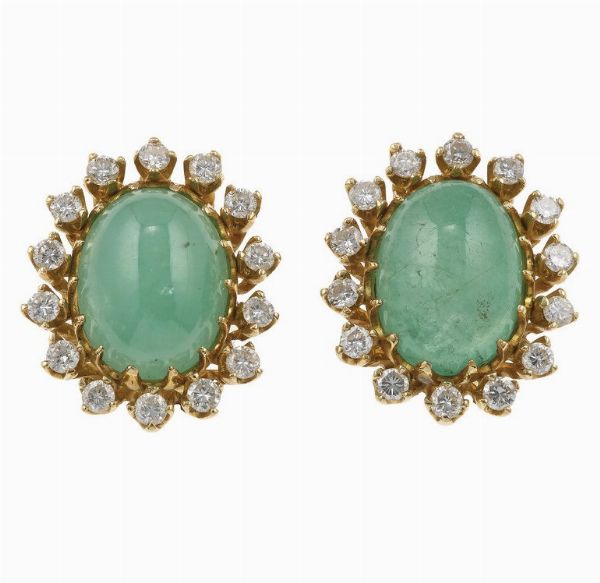 Orecchini con smeraldi taglio cabochon e diamanti a contorno
