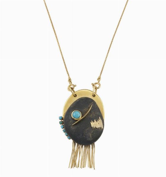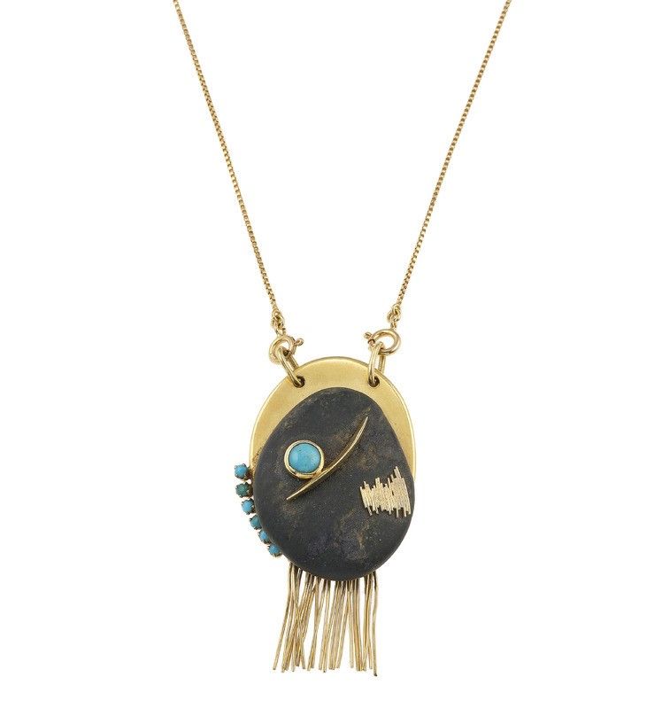 Paolo Spalla per Cavalli. Collana con pietra di fiume e turchesi