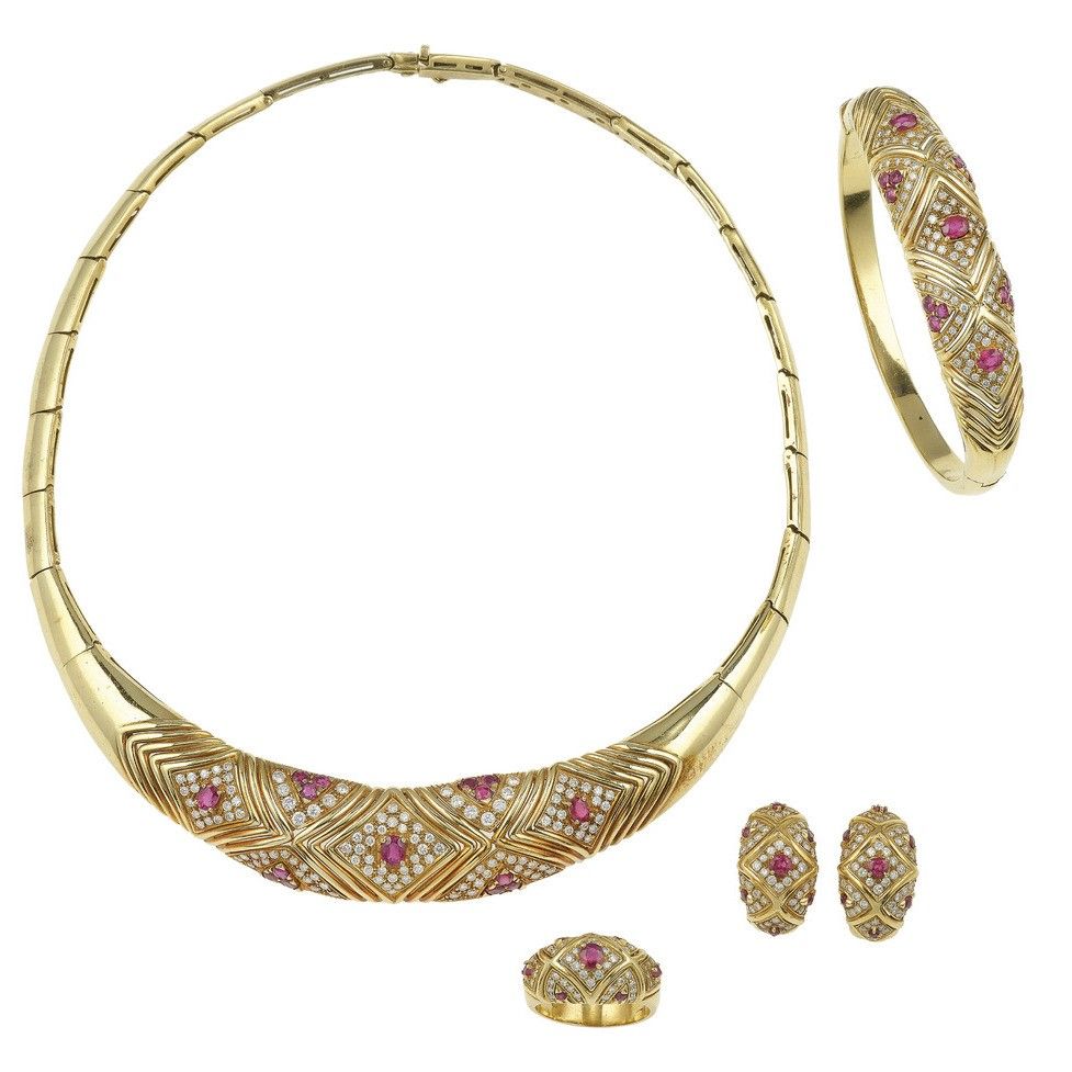 Parure composta da girocollo, anello, bracciale ed un paio di orecchini con diamanti [..]
