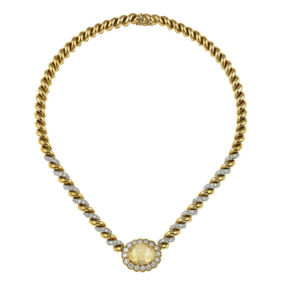 Sabbadini. Girocollo con corindone taglio cabochon, evidenze di trattamento termico, [..]