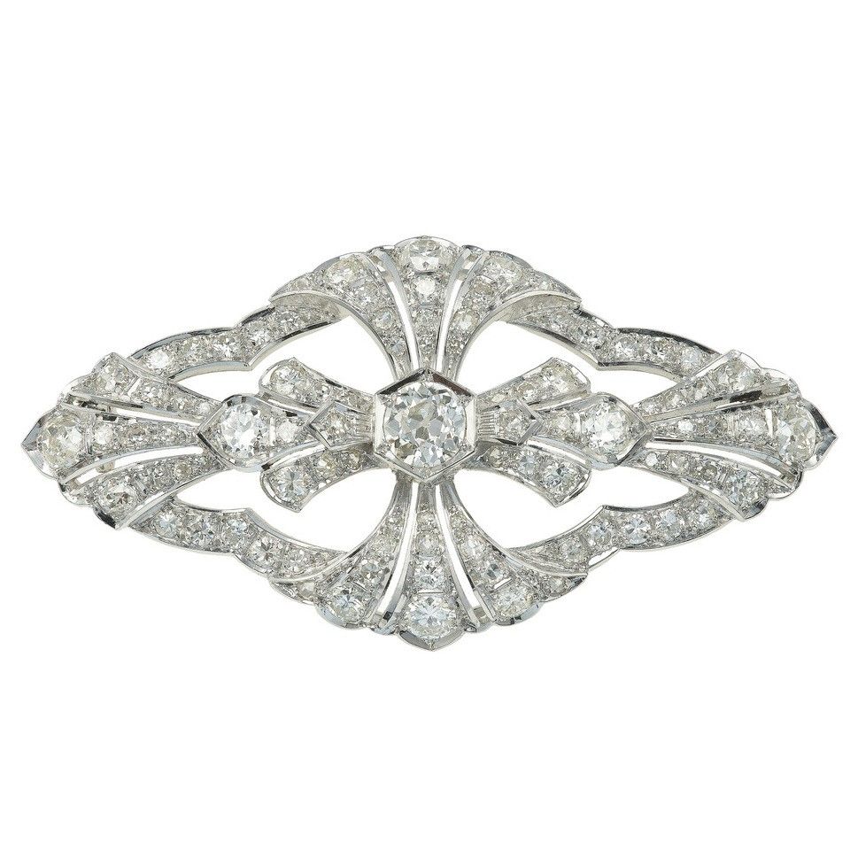 Spilla con diamante centrale di ct 0.90 circa e diamanti a contorno