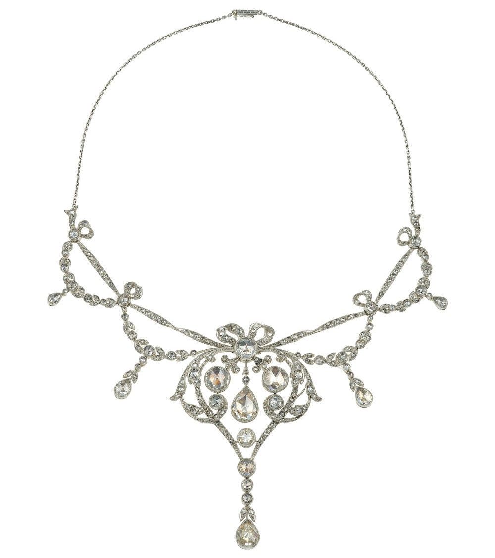 Tiara modificata e trasformata in collier. Con diamanti di vecchio taglio e taglio [..]
