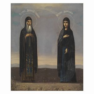 Scuola greca, sec. XIX SAN NETTARIO E SANT'ANASTASIA DI EGINA olio su tavola, cm 39x31,5 Greek school, 19th [..]