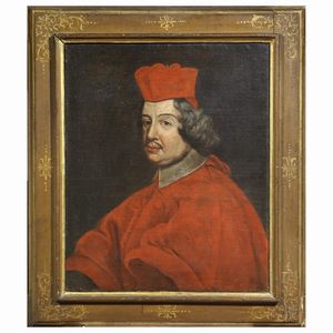 Scuola romana sec. XVII RITRATTO DI CARDINALE olio su tela, cm 73x60 Roman school, 17th century PORTRAIT OF [..]