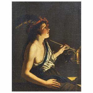Artista caravaggesco nordico, sec. XVII RAGAZZO CON LANTERNA olio su tela, cm 98x73 Northern Caravaggesque [..]