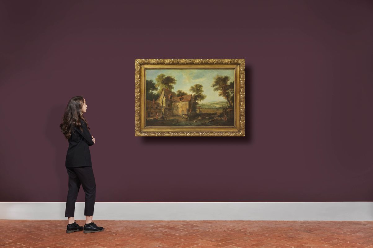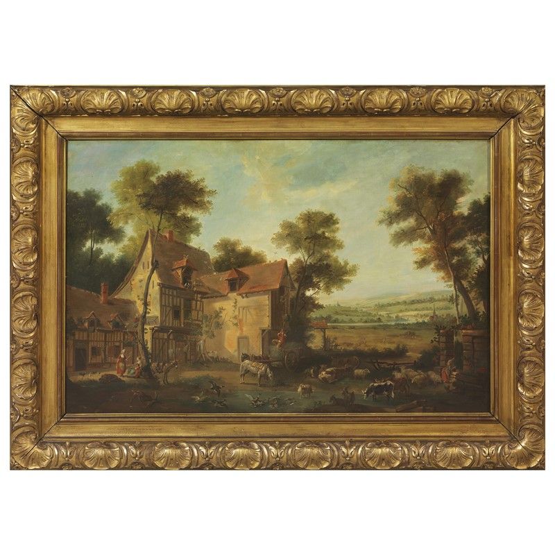 RUSTIC LANDSCAPE WITH FARMHOUSE, PEASANTS AND ANIMALS