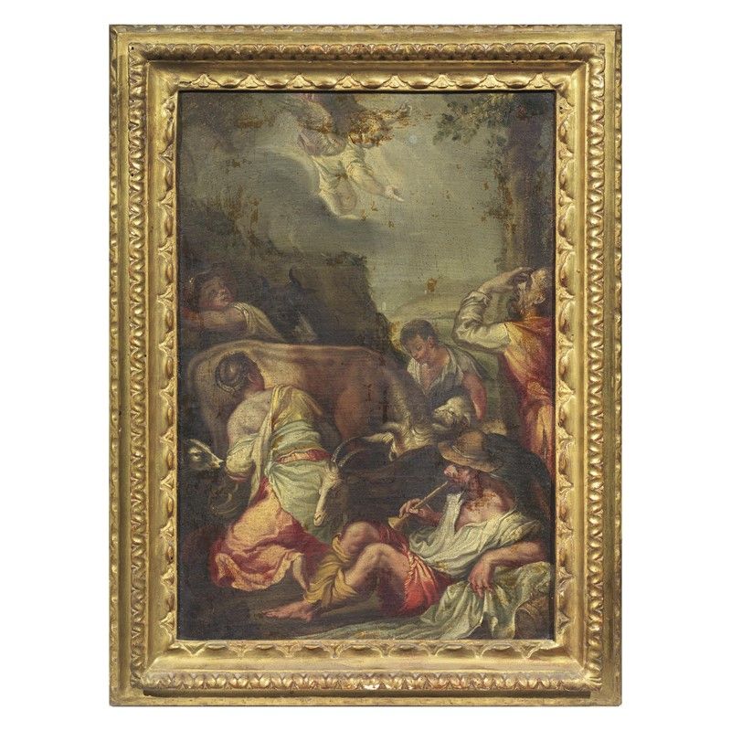 Scuola veneta, sec. XVII ANNUNCIO AI PASTORI olio su tela, cm 40x27
