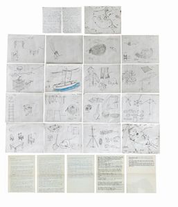 n. 17 tecniche miste su carta + 2 n. fogli scritti a mano dall'artista + n.5 fogli dattiloscritti, cm 22x28 (ciascun [..]