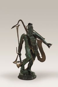 Scultura in bronzo fuso del Nettuno del Giambologna con parti di sassofono e tromba a fette, cm 86x27x74 1992 [..]