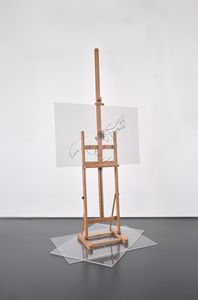 Cavalletto, inchiostro nero su plexiglas, negativi fotografici, matita nera e lastre di plexiglas in, cm 250x145x145 [..]