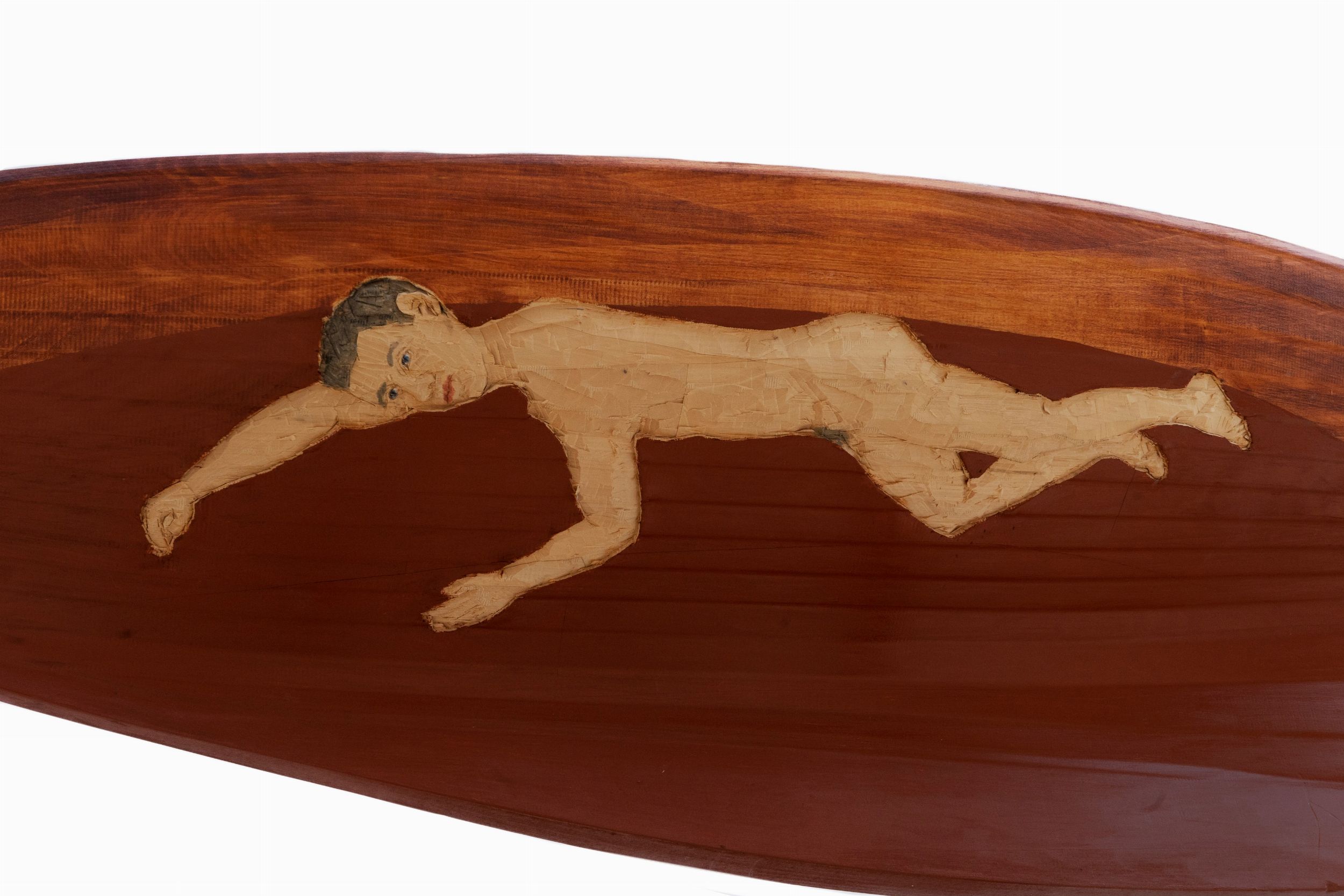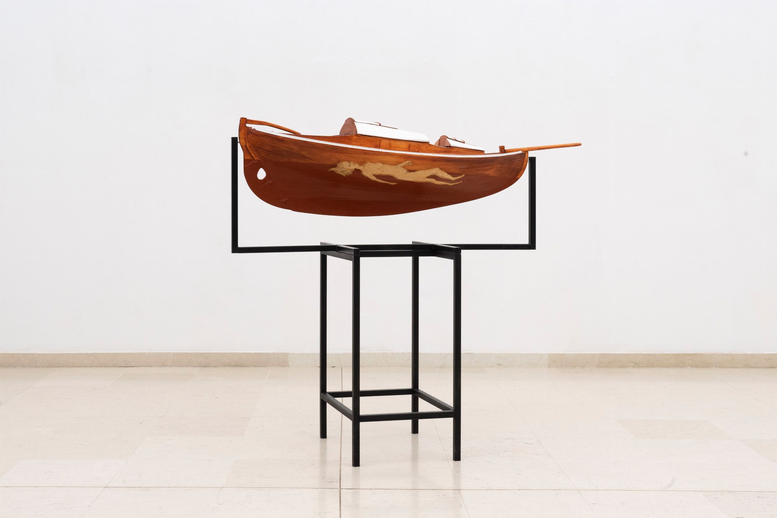 “Das Boot” (2006) è stata la risposta di Stephan Balkenhol (Fritzlar, 1957) all'invito ricevuto dal curatore Willy Van den Bussche a partecipare alla mostra triennale “Beaufort 2006”, un’esposizione diffusa tra le città della costa belga. Qui l’artista ha progettato una barca-scultura sul molo di Blankenberge. Nel suo studio a Karlsruhe ha intagliato da entrambi i lati dello scafo di legno della nave due figure: una figura femminile sdraiata (a tribordo) e una figura maschile sdraiata (a babordo). Le figure sembrano nuotare in direzioni opposte, l'uomo verso la prua, la donna verso la poppa; una metafora incredibilmente poetica per il desiderio umano di muoversi liberamente attraverso l'acqua.