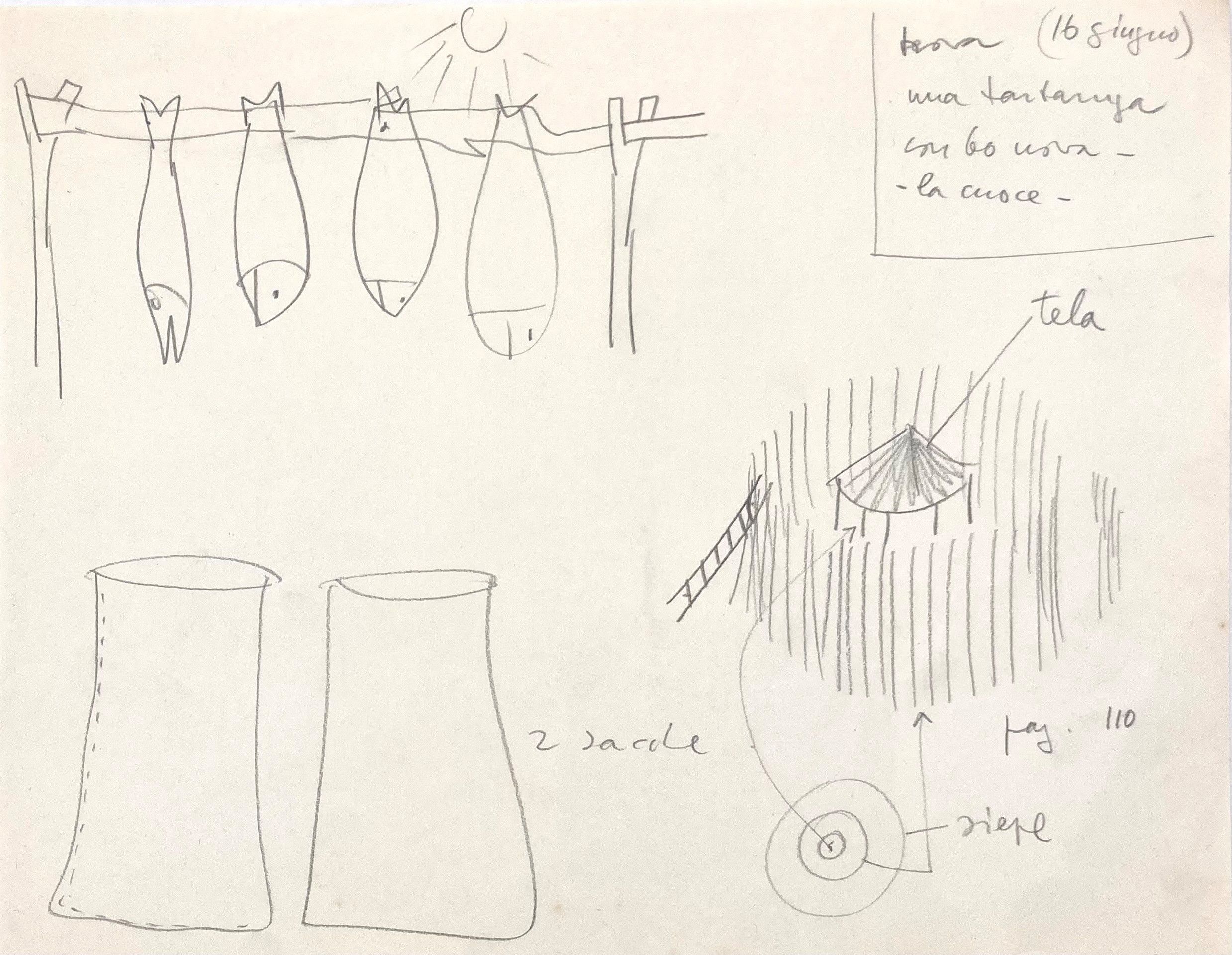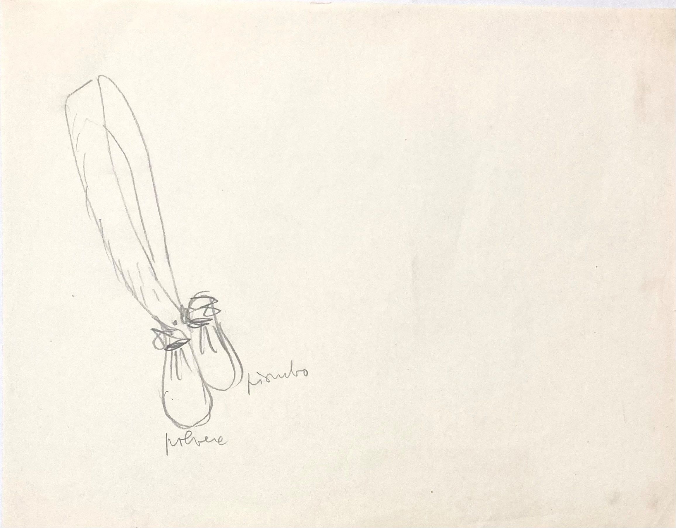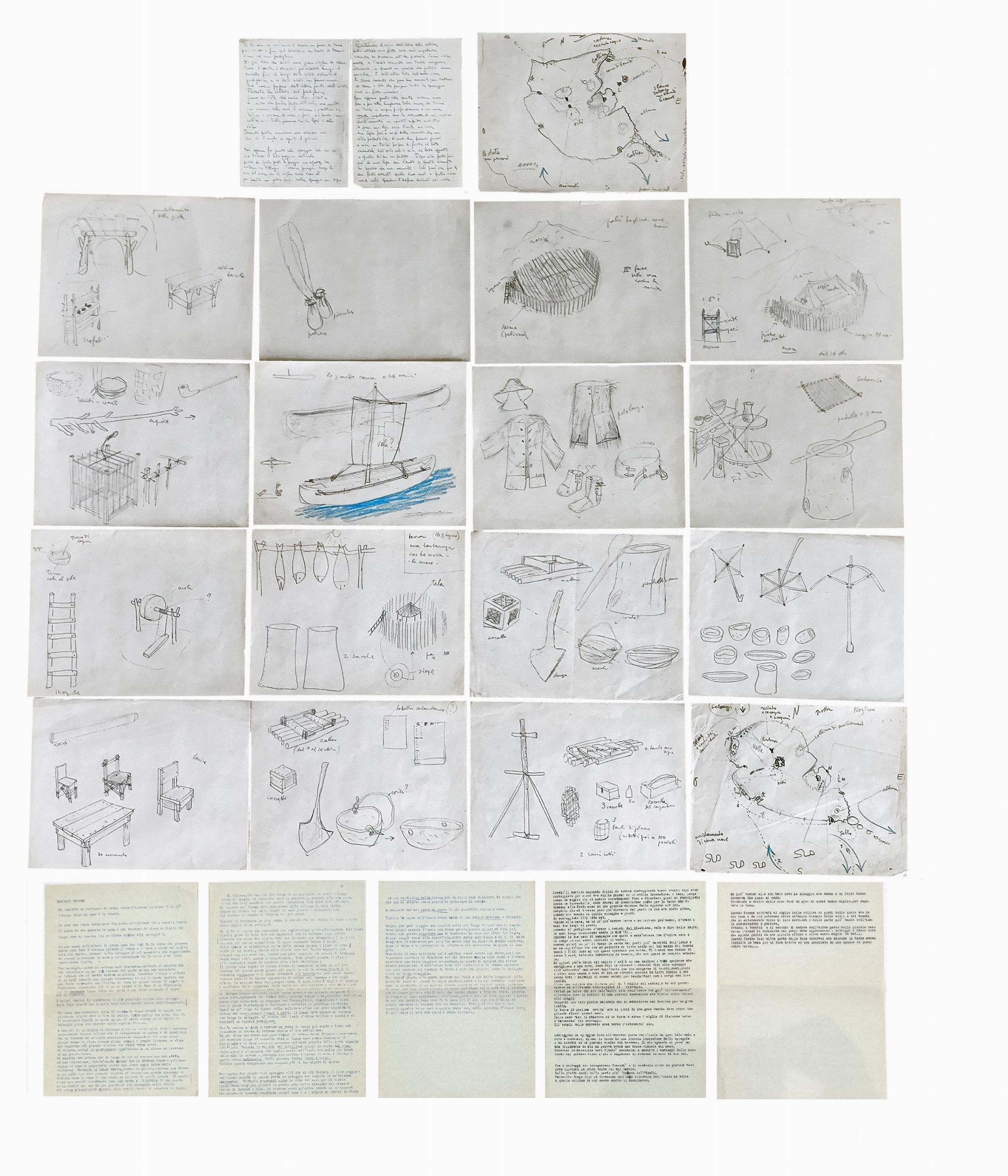 n. 17 tecniche miste su carta + 2 n. fogli scritti a mano dall'artista + n.5 fogli dattiloscritti, cm 22x28 (ciascun foglio)
