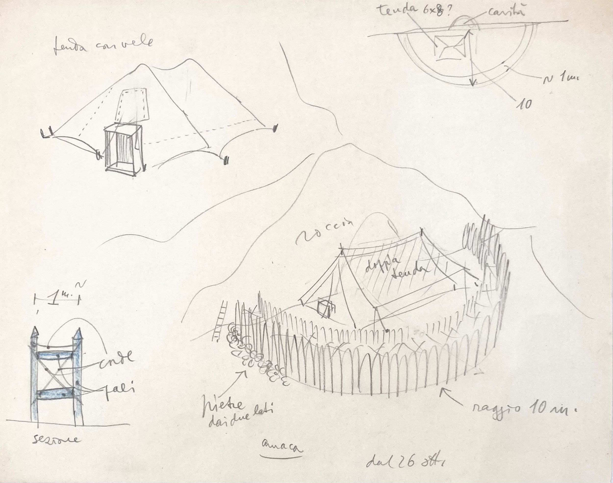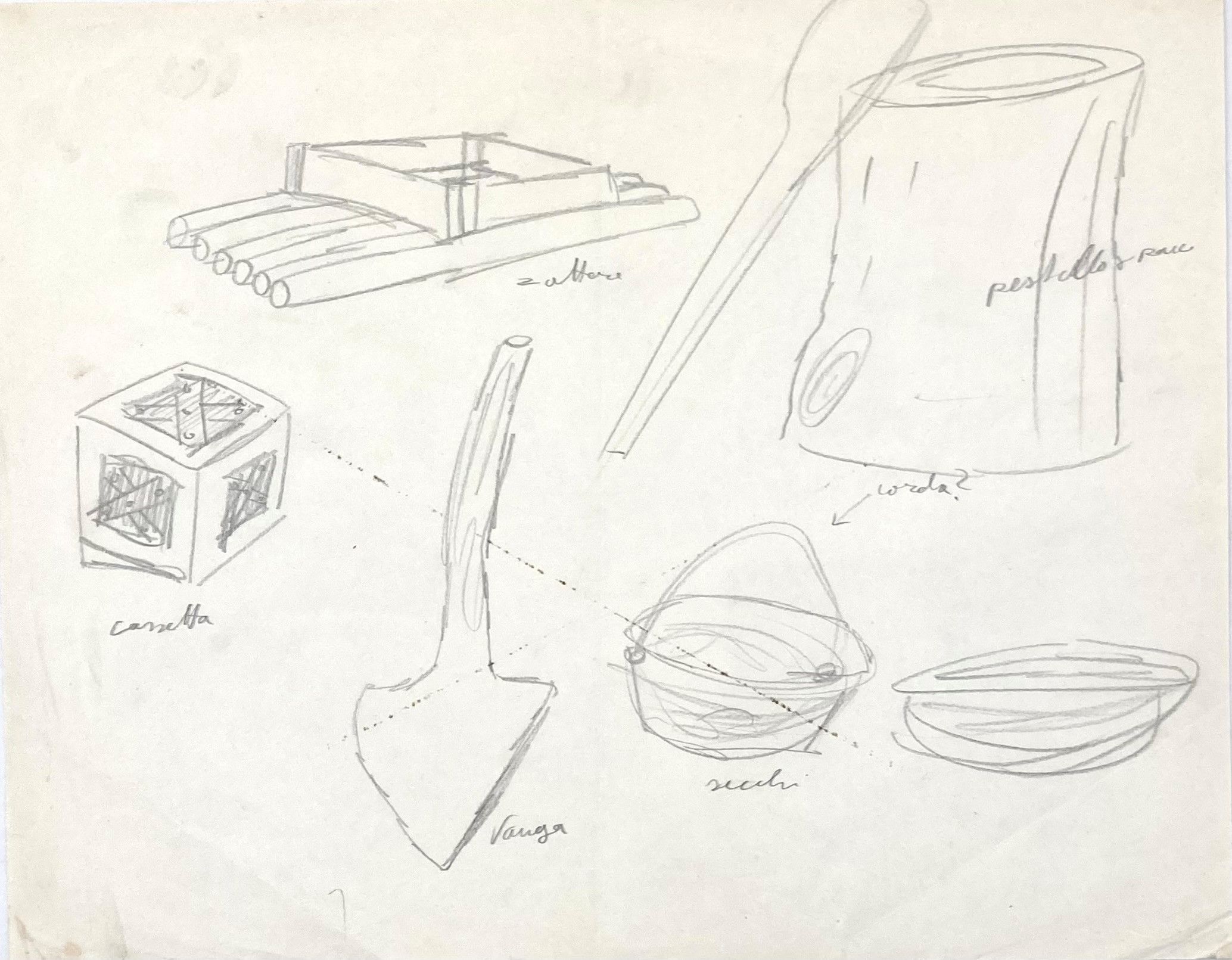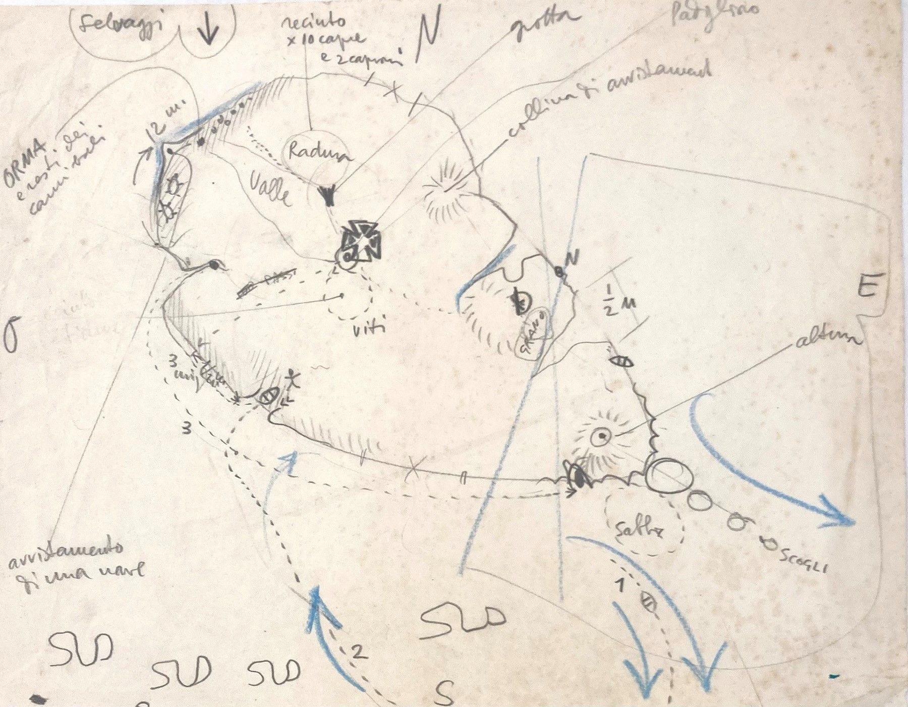 n. 17 tecniche miste su carta + 2 n. fogli scritti a mano dall'artista + n.5 fogli dattiloscritti, cm 22x28 (ciascun foglio)