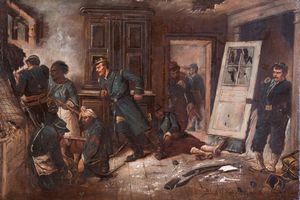 olio su tela, cm 90x140 reca sul retro della tela firma probabilmente apocrifa Il dipinto, trattando una tematica [..]