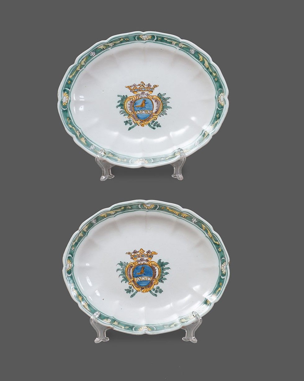 in maiolica bianca con decoro policromo, cm 18x22 cad.
