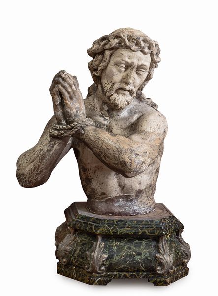 scultura in stucco con tracce di policromia, cm 70x27x30