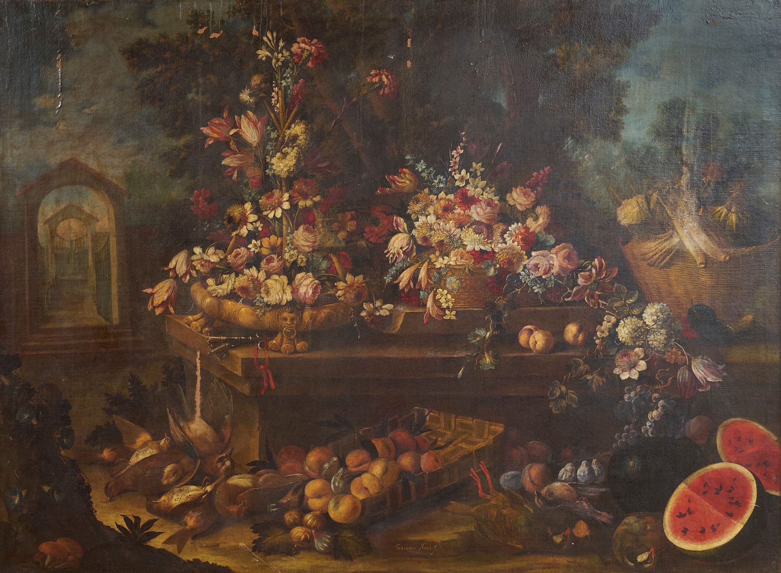 Giacomo Nani sin dai suoi esordi sviluppò quel genere naturamortistico di gusto neorealista prettamente seicentesco, ritraendo nelle sue opere trionfi di alimenti, fiori, frutta e cacciagione, rappresentando quasi una sorta di “menù” della cucina del tempo.