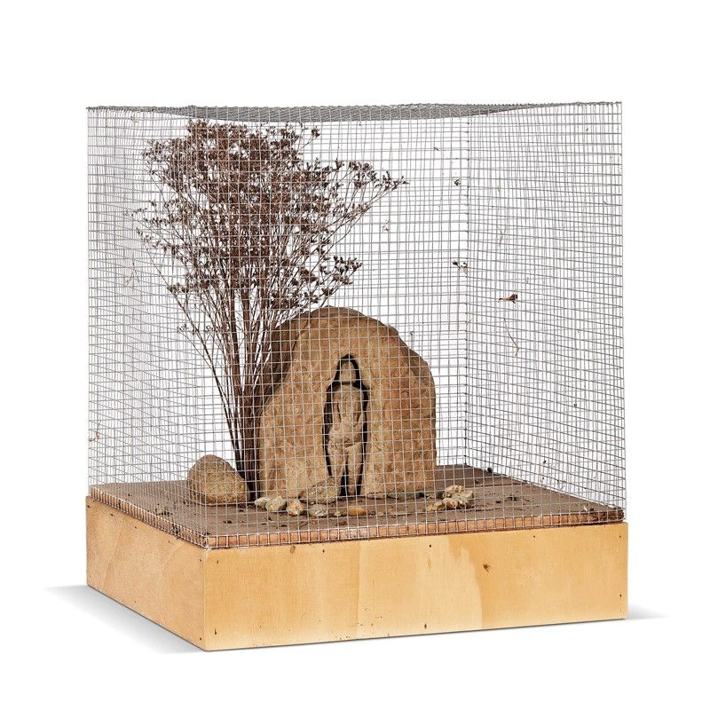 pietra, legno e rete metallica