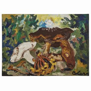 CARLO LEVI (Torino 1902 - Roma 1975) Funghi 1967 olio su tela cm 50x70 firmato in basso a destra al retro firmato [..]