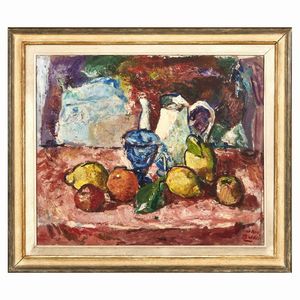 MARIO BUCCI (Foggia 1903-1970) Natura morta con limoni e caraffa tempera su tela cm 49,5x59,5 firmato in basso [..]